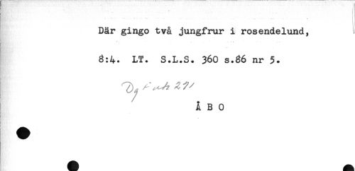 //// Där gingo två jungfrur i rosendelund, //// * -.. * - , .. * ^ . . .. //// ä^'.;. ... //// 8:4. LT. S.L.S. 360 s.36 nr 5. //// ÅBO ////