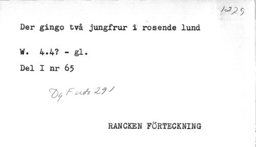 //// Der gingo två jungfrur i rosende lund //// W. 4.4? - gl. //// } //// ! //// Del I nr 65 //// ! //// RANCKEN FÖRTECKNING ; ////