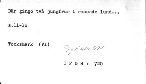 //// Där gingo två jungfrur i rosende lund... //// //// /s.11-12 //// Töcksmark (VI) //// I F G H : 720 //// i //// i ////