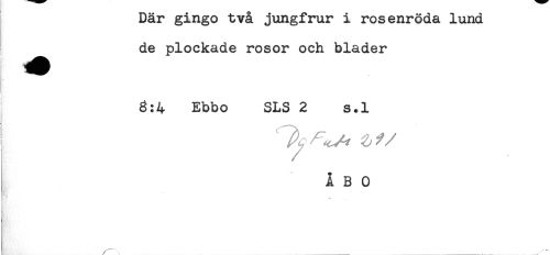 //// Dar gingo två jungfrur i rosenröda lund //// de plockade rosor och blader //// 8:4 Ebbo SLS 2 s.l //// - ^ //// Å B 0 //// _ _ ////