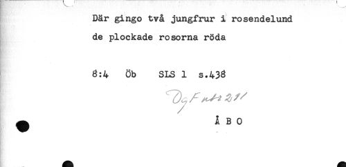 //// Där gingo två jungfrur i rosendelund //// de plockade rosorna röda //// 8:4 Öb SLS 1 s.433 //// ^ ÅBO ////