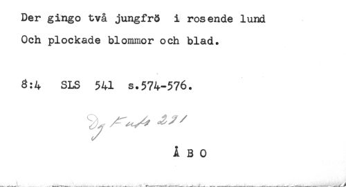 //// Der gingo två jungfrS i ros ende lund //// Och plockade blommor och blad. //// 8:4 SLS 541 s.574-576. //// ^ , ,, v ////