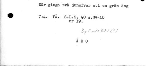 //// Dar gingo tva jungfrur uti en grön äng //// ^ 7:4. VÅ. S.L.S. 40 s.39-40 //// nr 19. //// ÅBO ////