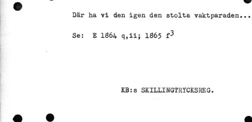 //// Där ha vi den igen den stolta vaktparaden... //// Se: E 1864 q,ii; 1865 f3 //// w //// KB:s SKILLINGTRYCKSREG. ////
