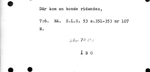 //// Där kom en bonde ridandes, //// 7:6. NA. S.L.S. 53 s.351-353 nr 107 //// N. //// ÅBO //// *! ////