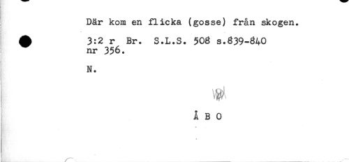 //// ) //// Där kom en flicka (gosse) från skogen. //// F * - //// ^ 3:2 r Br. S.L.S. 508 s.839-840 //// nr 356. //// N. //// w //// ÅBO //// * //// ....... .... " ////