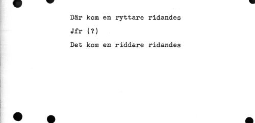 //// Där kom en ryttare ridandes //// Jfr (?) //// Det kom en riddare ridandes //// ! //// t:' //// - ////
