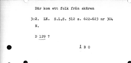 //// Där kom ett folk från skären //// * //// - //// 3:2. LE. S.L,S. 512 s. 622-623 nr 304 //// N. //// D 129 ? //// ^ ÅBO ////