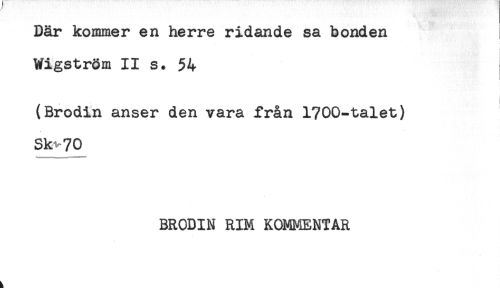 //// Där kommer en herre ridande sa bonden //// Wigström II s. 54 //// (Brodin anser den vara från 1700-talet) //// Sk^70 //// BRODIN RIM KOMMENTAR ////