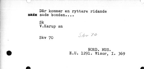 //// Där kommer en ryttare ridande //// } xx&E sade bonden.... //// i Sk //// ! V.Karup sn //// Skv 70 ^ ^^ //// * //// ^ NORD. MUS. //// # E.U. 1291. Visor, 1. 369 ////