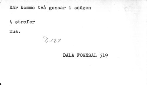 //// Där kommo två gossar i snögen //// t //// i //// 4 strofer //// < //// ! //// DALA FORNSAL 319 //// i //// ! ////