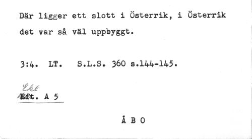 //// Där ligger ett slott i Österrik, i Österrik //// det var så väl uppbyggt. //// 3:4- LT. S.L.S. 360 s.144-145. //// Eft. A 5 ////