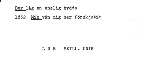 //// Der låg en enslig hydda //// 1352 Min vän mig har förskjutit //// L U B SKILL. UNIK ////