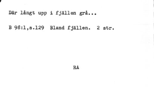//// Där långt upp i fjällen grå... //// B 98:1,s.129 Bland fjällen. 2 str. //// < //// < //// i //// RA ////