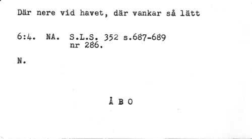 //// Där nere vid havet, där vankar så lätt //// 6:4. NA. S.L.S. 352 s.687-689 //// nr 286. //// N. //// ÅBO ////