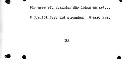 //// Där nere vid stranden där lekte de två... //// B 8,s.l31 Nere vid stranden. 5 str. //// RA ////