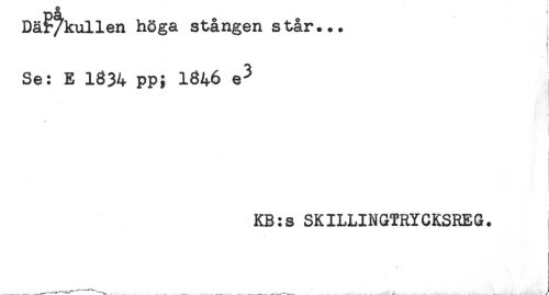 //// Där/kullen höga stången står... //// Se: E 1834 pp; 1846 e^ //// < //// i //// < //// < //// KB:s SKILLINGTRYCKSREG. ////