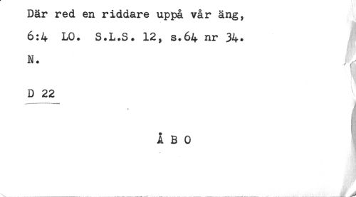 //// Dar red en riddare uppå var äng, //// 6:4 LO. S.L.S. 12, s.64 nr 34* //// N. //// B 22 //// ÅBO //// ....,.......* ,.......-......,. , _____ ////