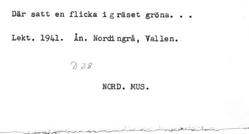 //// Där satt en flicka i g räset gröna. . . //// Lekt. 1941. Ån. Nordingrå, Vallen. //// NORD. MUS. ////