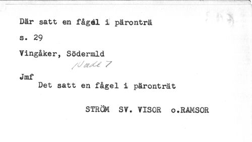 //// Där satt en fågdl i päronträ //// s. 29 //// Vingåker, Södermld //// Jmf //// Det satt en fågel i päronträt //// STRÖK SV. VISOR o.RAMSOR ////