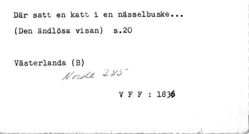 //// Där satt en katt i en nässelbuske... //// (Den ändlösa visan) s.20 //// Västerlanda (B) //// V F F : ////