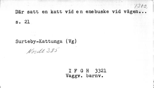 //// Där satt en katt vid en enebuske vid vägen... //// s. 21 //// ' //// i //// t //// . i //// Surteby-Kattunga (Vg) //// I F G H 3321 //// Vaggv. barnv. ////