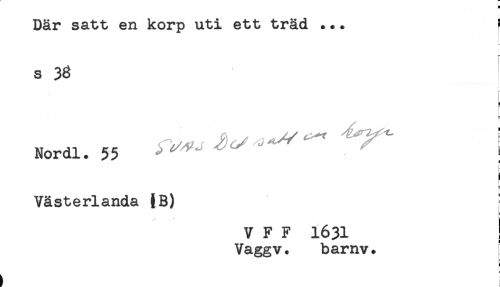 //// Där satt en korp uti ett träd ... ^ //// s 38 //// r //// i //// Nordl. 55 ; //// . < //// E //// Västerlanda (B) //// V F F 1631 ! //// Vaggv. bamv. ////