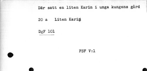 //// Där satt en liten Karin i unga kungens gård //// ' //// * //// 20 a Liten KariR //// DgF 101 //// ' ' ' //// - //// - //// ^ FSF V:1 ////