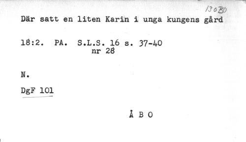 //// Där satt en liten Karin i unga kungens gård //// 16:2. PA. S.L.S. 16 s. 37-40 //// nr 2g //// N. //// DgF 101 ////
