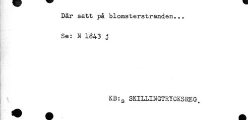 //// Där satt på blomsterstranden... //// Se: N 1343 j //// KB:g SKILLINGTRYCKSREG, //// ..... ////