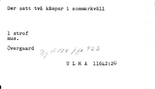//// ) //// Der satt två kämpar i sommarkväll //// 1 strof //// mus. //// Övergaard ^ ^ ^^ J //// U L M A 11642:20 ////