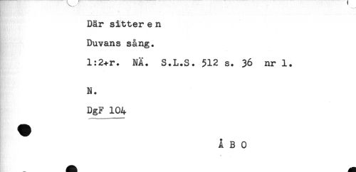 //// Där sitter e n //// Duvans sång. //// l:2+r. NÄ. S.L.S. 512 s. 36 nr 1. //// N. //// DgF 104 ////