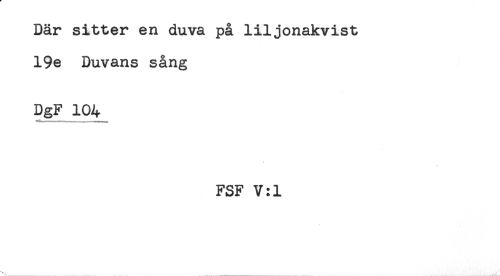 //// Där sitter en duva på liljonakvist //// 19e Duvans sång //// DgF 104 //// FSF V:1 //// * ////