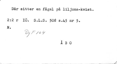 //// Där sitter en fågel på liljona-kvist. //// 2:2 r 10. S.L.S. 503 s.45 nr 5. //// N. //// ÅBO //// _ ^ ^ ^ ... ....^ ////