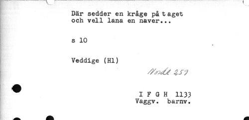 //// Där sedder en krage på t aget //// och vell lana en näver... //// s 10 //// Veddige (Hl) //// ^ I F G H 1133 //// Vaggv. barnv. ////