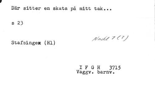 //// Där sitter en skata på mitt tak... //// s 23 ! //// Stafsingex (Hl) //// I F G H 3715 //// Vaggv. bamv. ////