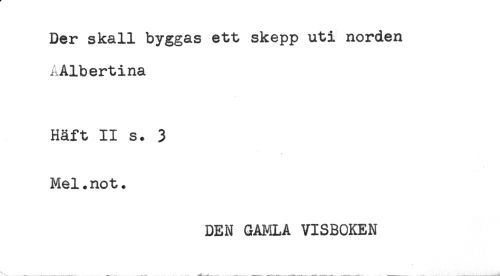 //// Der skall byggas ett skepp uti norden //// ..Albertina //// Häft II s. 3 //// Mel.not. //// DEN GAMLA VISBOKEN ////
