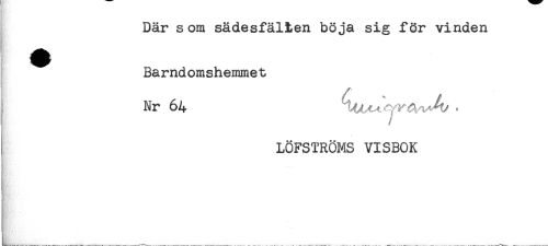 //// Där s om sädesfälten böja sig för vinden //// Barndomshemmet //// ' //// , Nr 64 . //// LÖFSTRÖMS VISBOK ////