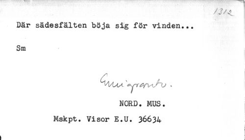 //// Där sädesfälten böja sig för vinden... //// Sm //// ! //// NORD. MUS. //// Mskpt. Visor E.U. 36634 ////