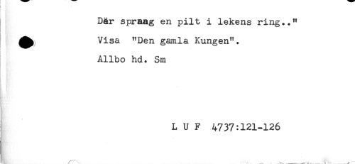 //// Där spraag en pilt i lekens ring.." //// ! //// t* tS*' //// Visa "Den gamla Kungen". //// Allbo hd. Sm //// i //// L U F 4737:121-126 //// ' . .____ ... ////