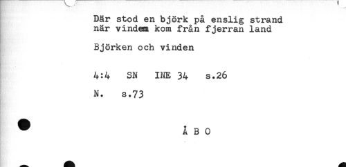 //// Där stod en björk på enslig strand //// när vindem kom från fjerran land //// Björken och vinden //// 4:4 SN INE 34 s.26 //// N. s.73 //// ^ ÅBO ////