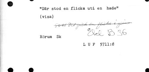 //// "Där stod en flicka uti en hade" //// (visa) //// Rörum Sk ^ " //// L U F 5711:8 //// K'. *" //// - ////