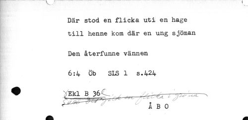 //// Där stod en flicka uti en hage //// till henne kom där en ung sjöman //// Den återfunne vännen //// 6:4 Öb SLS 1 s.424 ////