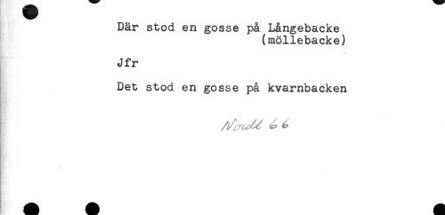 //// Där stod en gosse på Långebacke //// (möllebacke) //// Jfr //// Det stod en gosse på kvarnbacken ////
