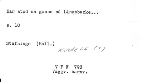 //// Där stod en gosse på Långebacke... //// s. 10 //// Stafsinge (Hall.) //// V F F 798 //// Vaggv. barnv. ////