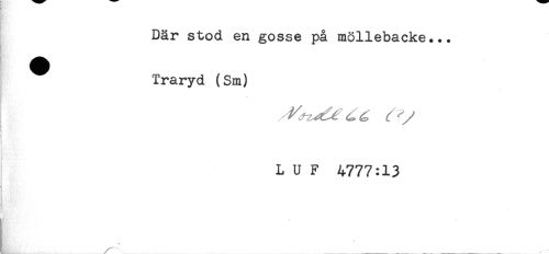 //// Där stod en gosse på möllebacke... //// ^ Traryd (Sm) //// ! ^ ^ < //// L U F 4777:13 //// J //// < //// ......-. ___ ___ ////