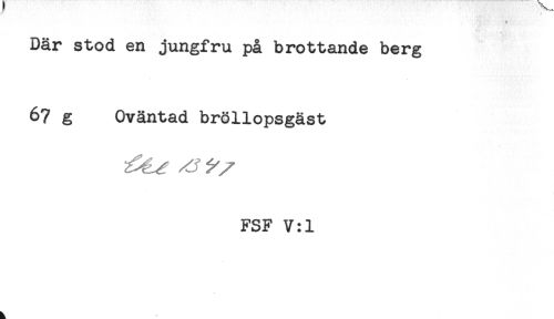 //// Där stod en jungfru på brottande berg //// 67 g Oväntad bröllopsgäst //// FSF V:1 ////