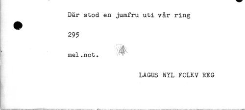//// Där stod en junifru uti vår ring //// 295 //// mel.not. ^ //// nä //// te //// LAGUS NYL FOLKV REG //// ^ , ^ .... ////