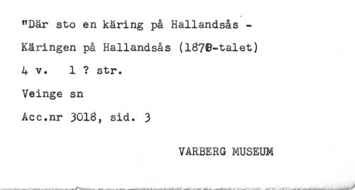 //// "Där sto en käring på Hallandsås - //// Käringen på Hallandsås (l37B-talet) //// 4 v. 1 ? str. //// Veinge sn //// Acc.nr 3016, sid. 3 //// VARBERG MUSEUM //// ___-t___-r..____- _____-....___- ---^ ////