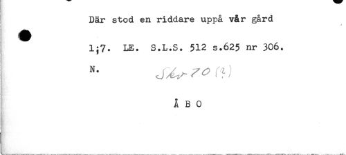 //// Där stod en riddare uppå vår gård //// ^ 1;7. LE. S.L.S. 512 s.625 nr 306. //// ^ ÅBO ////